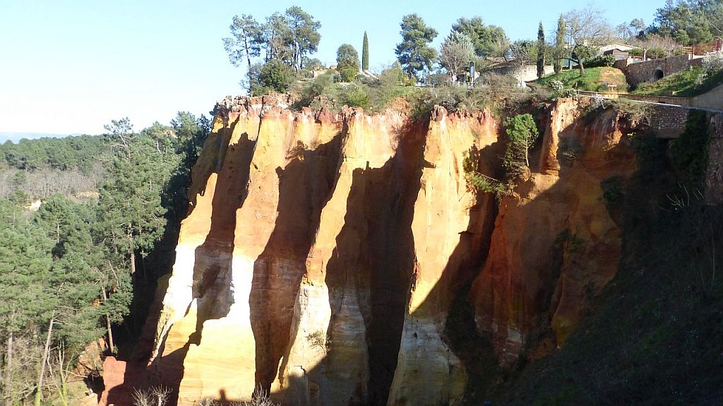 Erkundung der Ockerhügel des Colorado der Provence. Rustrel, Besichtigung des malerischen Dorfes.