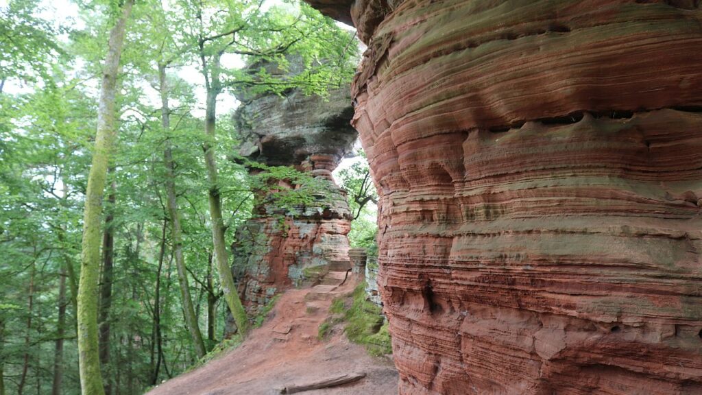 - Dienstag „Colorado d‘ Alsace“ oder Altschlossfelsen. Wanderung entlang der vielfarbigen Felsen und Picknick mit Aussicht über den mittleren Wasgau. Als Wasgau wird der südliche Teil des Pfälzerwaldes zusammen mit den Nordvogesen bis Zabern (Saverne) bezeichnet.