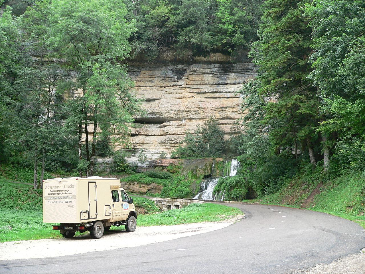Als nächstes lockt uns einer der wenigen Badeseen des Jura, in dessen Nähe eine Schlucht mit vielen Wasserfällen zu einer unvergesslichen Wanderung lockt. Hier sind wir mit unseren Wohnmobilen über Nacht auf einem wunderschön gelegenen Campingplatz.